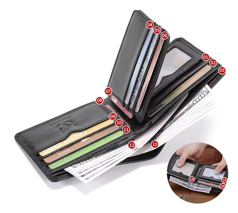 - Monedas, Bolsillo para identificación, Compartimento para billetes, Portafotos, Tarjetero
